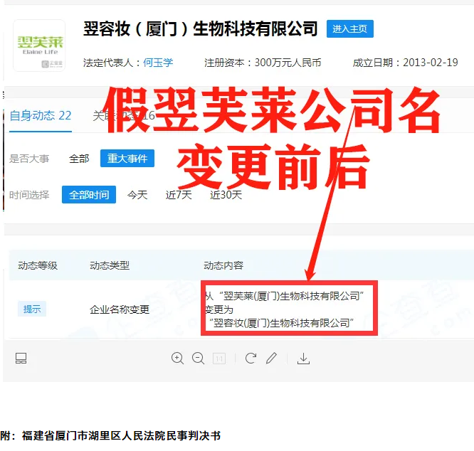 假冒“翌芙莱”公司经法院终审判决,依法修改公司名称,禁止使用“翌芙莱”字样。